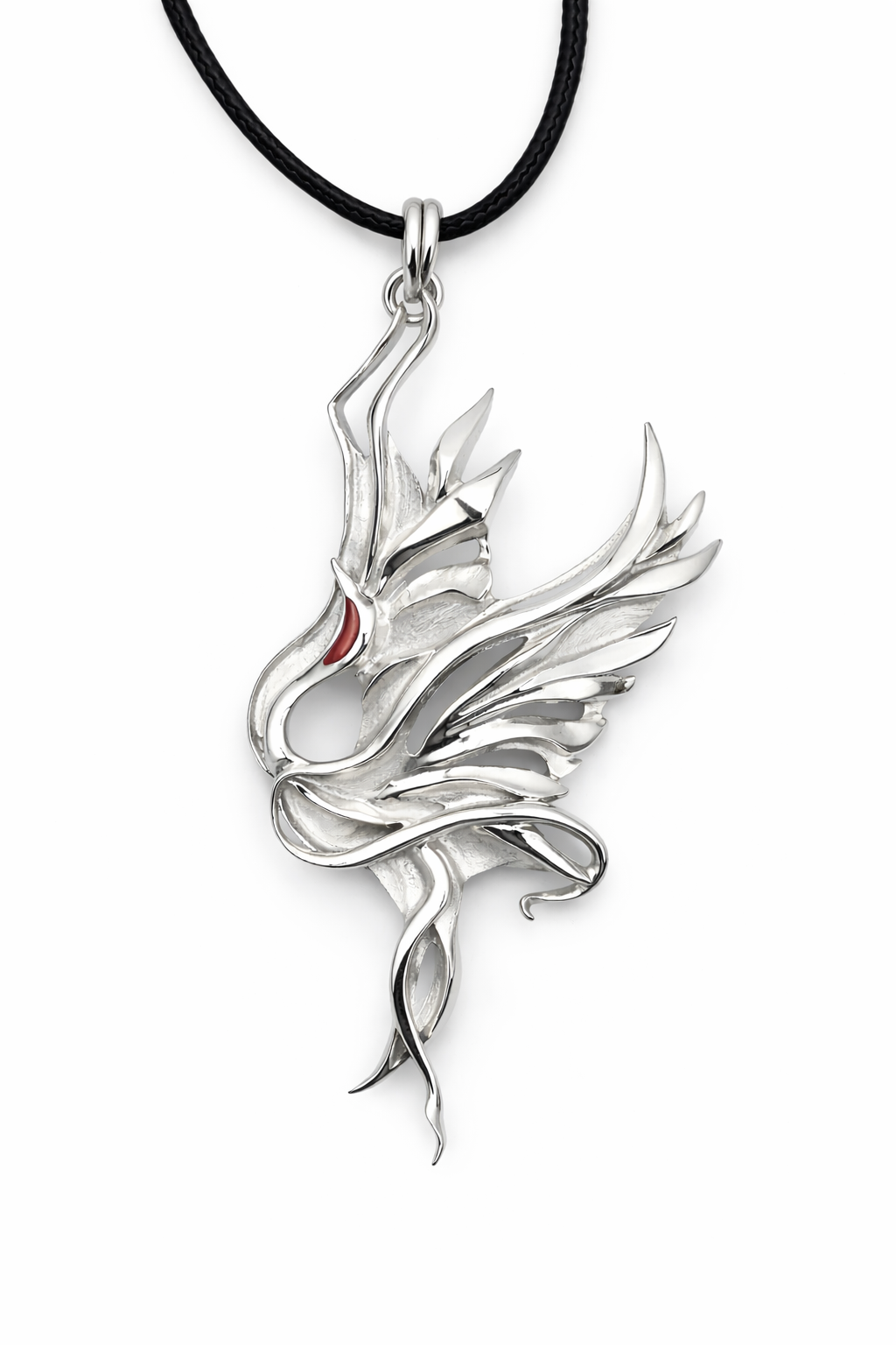 Этот лебедь не про спокойствие и гладь воды. Он про жест. Про внутреннюю силу, скрытую в пластике. Поверхность построена на контрасте: гладкие, отражающие плоскости поднимаются над более мягкой, матовой фактурой, создавая ощущение глубины и многослойности. Акценты красной эмали добавляют точку фокуса — как взгляд, как внутреннее напряжение формы. Комплект дополнен серьгами, повторяющими основную линию и ритм кулона, формируя цельный образ. Ссылка на серьги - https://annabarysheva.shop/earrings#!/tproduct/547724441-1776160965801