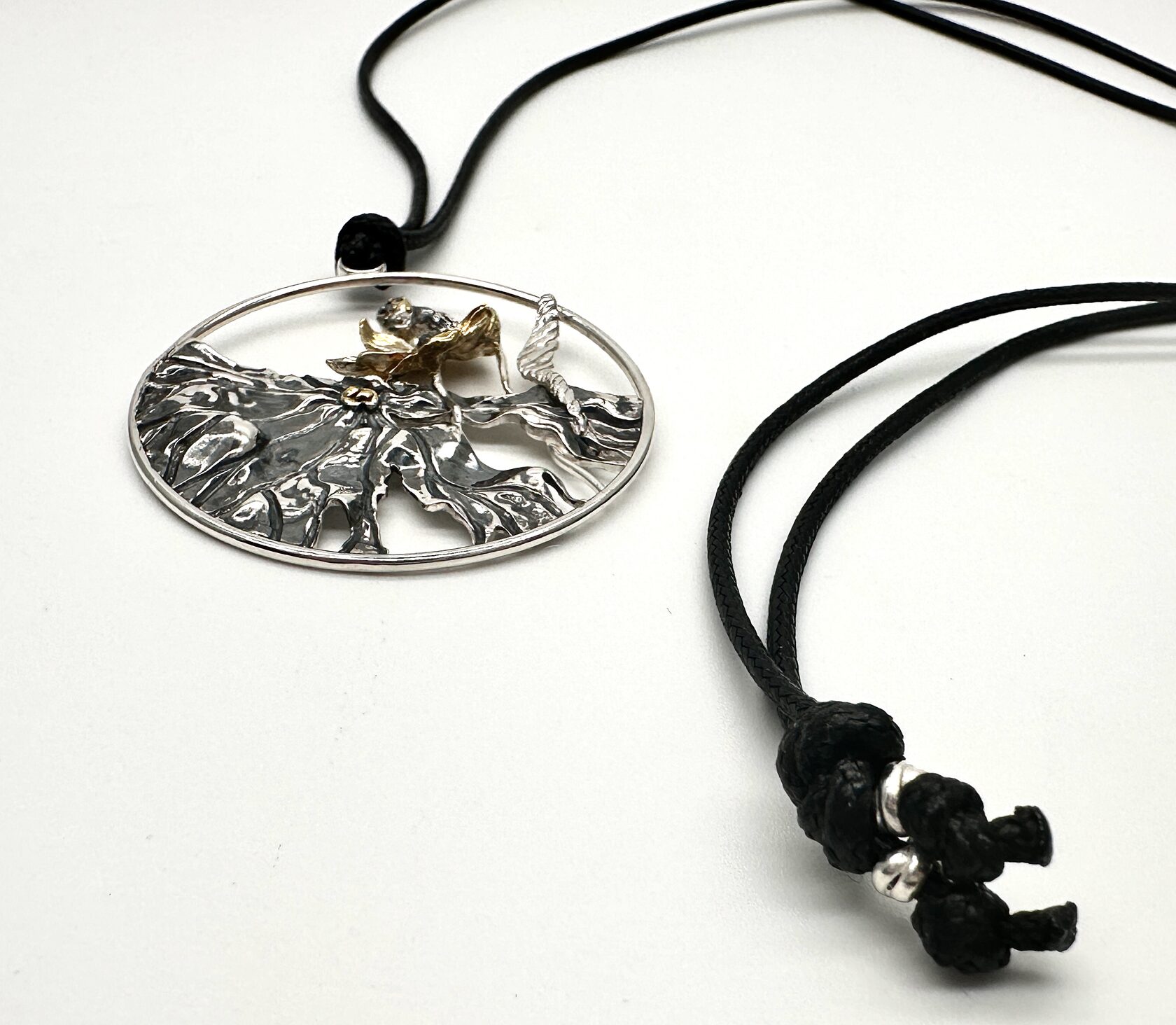 Подвеска абстрактной формы на шнурке с чернением. Подходит к любому образу. Вес - 21 гр. Серебро 925. Украшение покрыто специальным составом, препятствующим потемнению. При соблюдении рекомендаций: не мочить, избегать попадания парфюма, лака для волос, крема и деликатное хранение, покрытие будет долго сохранять свои защитные свойства.